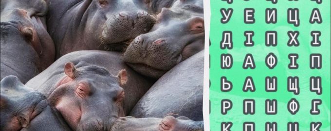 Det tar sekunder å finne ordet «flodhest» i et puslespill / collage av Moje, foto av depositphotos.com