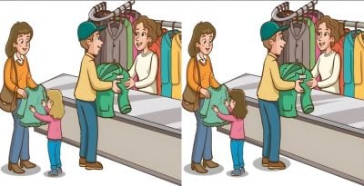 Klar for neste utfordring? Ta en titt på to bilder av en klesbutikk der en familie handler klær. Ved første øyekast ser bildene like ut, men se nøye etter. Det er tre små forskjeller. Tror du at du kan finne dem alle på bare 25 sekunder? La oss se hvor skarp du er!