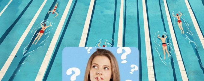Nedenfor ser du et bilde med et svømmebasseng. Det er folk som svømmer på banene. Det ser ut til – en vanlig dag, hva er så rart med det! Men det er en liten nyanse som «ødelegger» bildet. Du må finne ut hva det handler om.