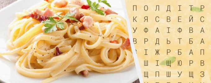 Klarer du å fullføre denne oppgaven på den tilmålte tiden? Prøv å finne ordet «pasta» / collage av Moje, foto av depositphotos.