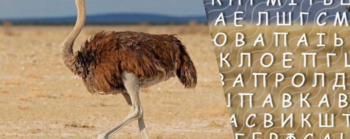 Ordet «struts» er gjemt blant kaotisk plasserte bokstaver. Du må finne ordet «struts» på 10 sekunder / Moje-collage, foto av depositphotos.
